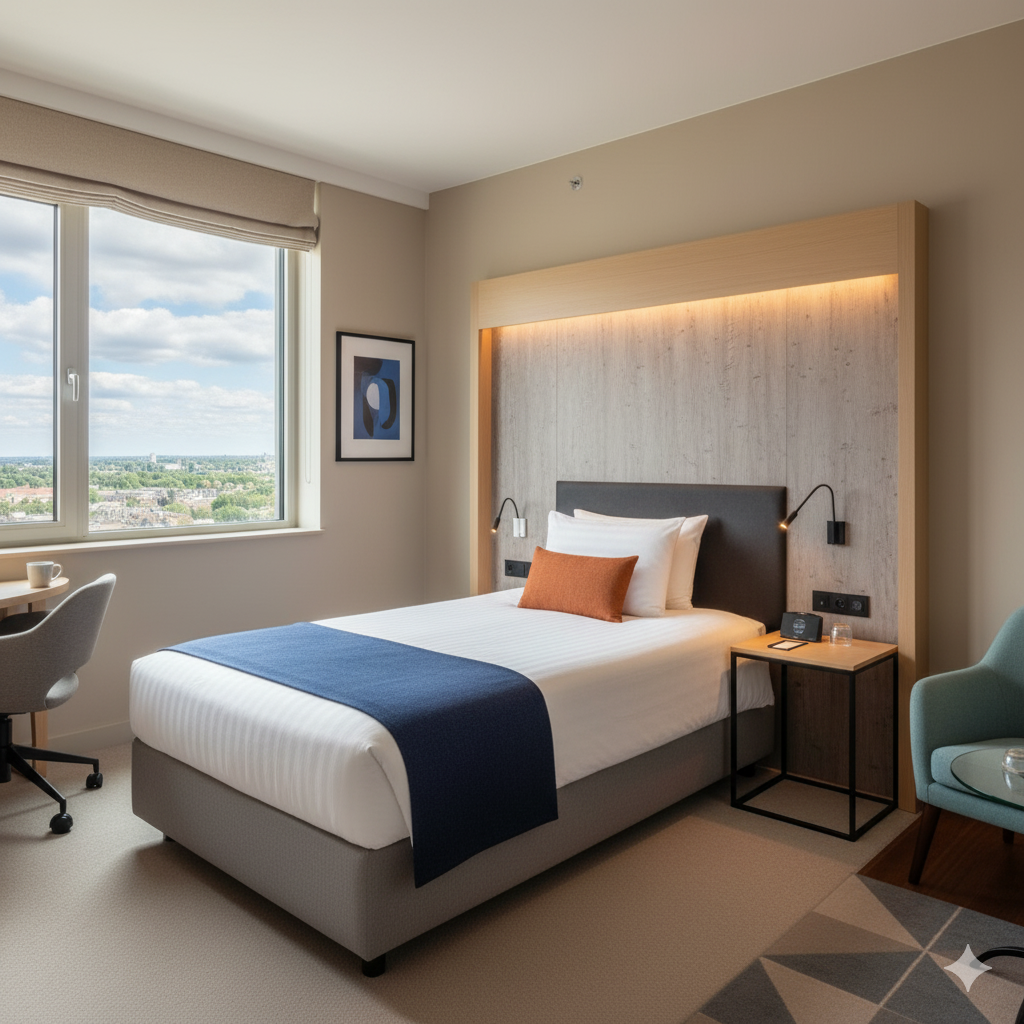 Confort, Fonctionnalité et Sérénité. Capacité: 2 Personnes Literie: 1 Lit Double Queen Size: (160×200 cm) Superficie: Environ 18 m² Vue: Sur la cour intérieure (garantie de calme) ou la ville Salle de Bain: Privative avec douche à l’italienne ou baignoire