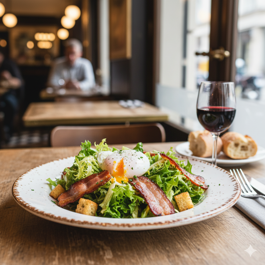 Par notre maître fromager, confiture de cerises noires et salade de jeunes pousses.