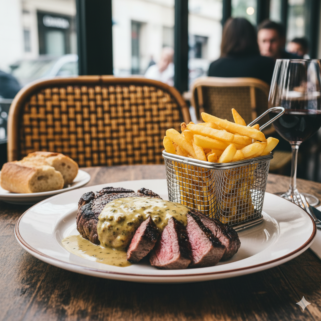 Jus réduit au Madiran, gratin dauphinois traditionnel et fricassée de champignons.
